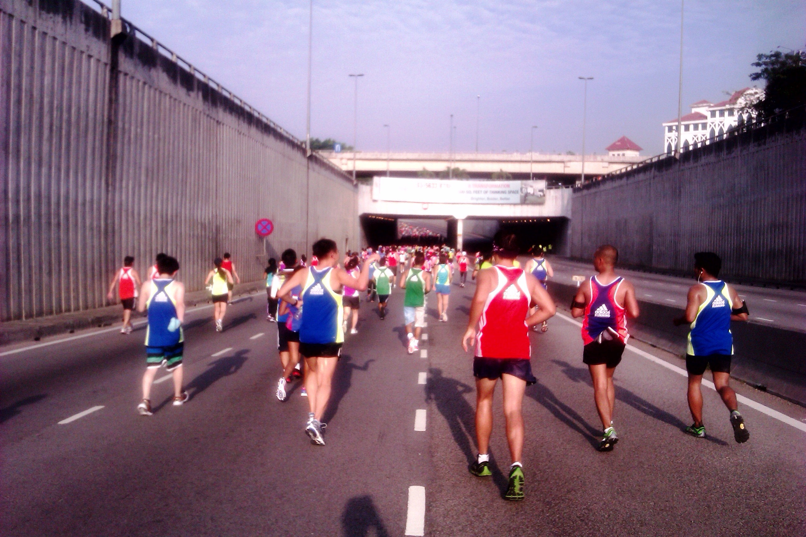 THE ICING: Another one of my favourite part was watching the colourful mass of runners wearing their attractive bright orange, blue, yellow, pink, purple & green running vests moving in unison along the NPE. From the sky high above us, the otherwise mundane gray expressway must have looked like a beautiful, moving flower bed of roses, lilacs, lilies, tulips, and chrysanthemums.