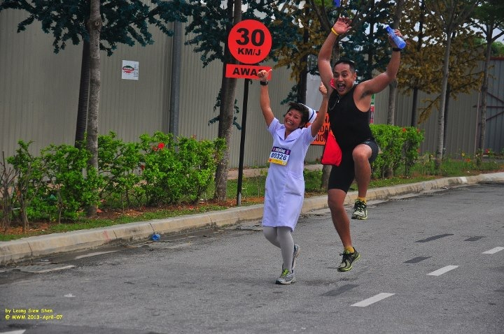 Incidentally, the photo is of me & my nurse friend, Pui Yee, running DELIRIOUSLY in the inaugural Malaysia Women Marathon in March 2013. Now that’s another story! Hehe