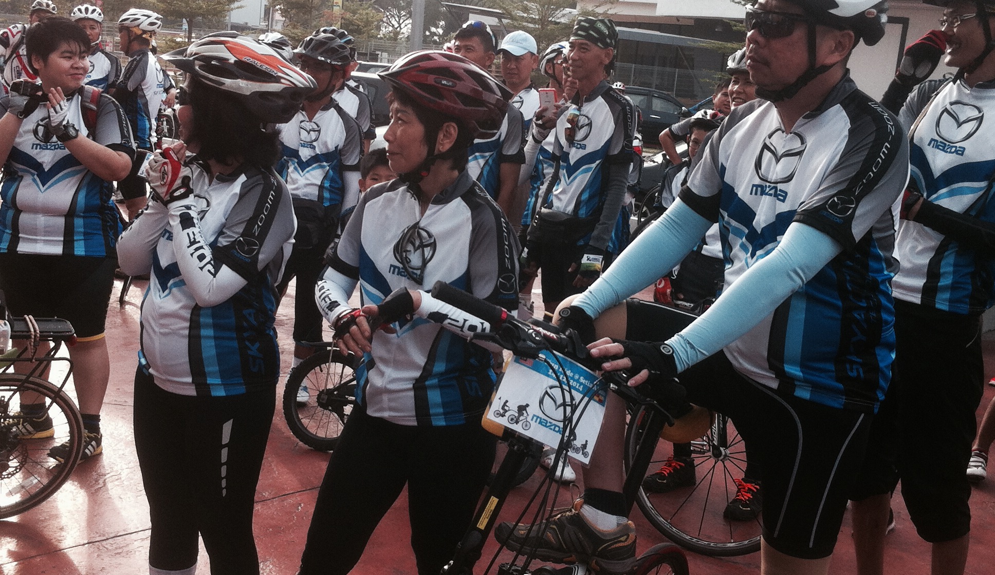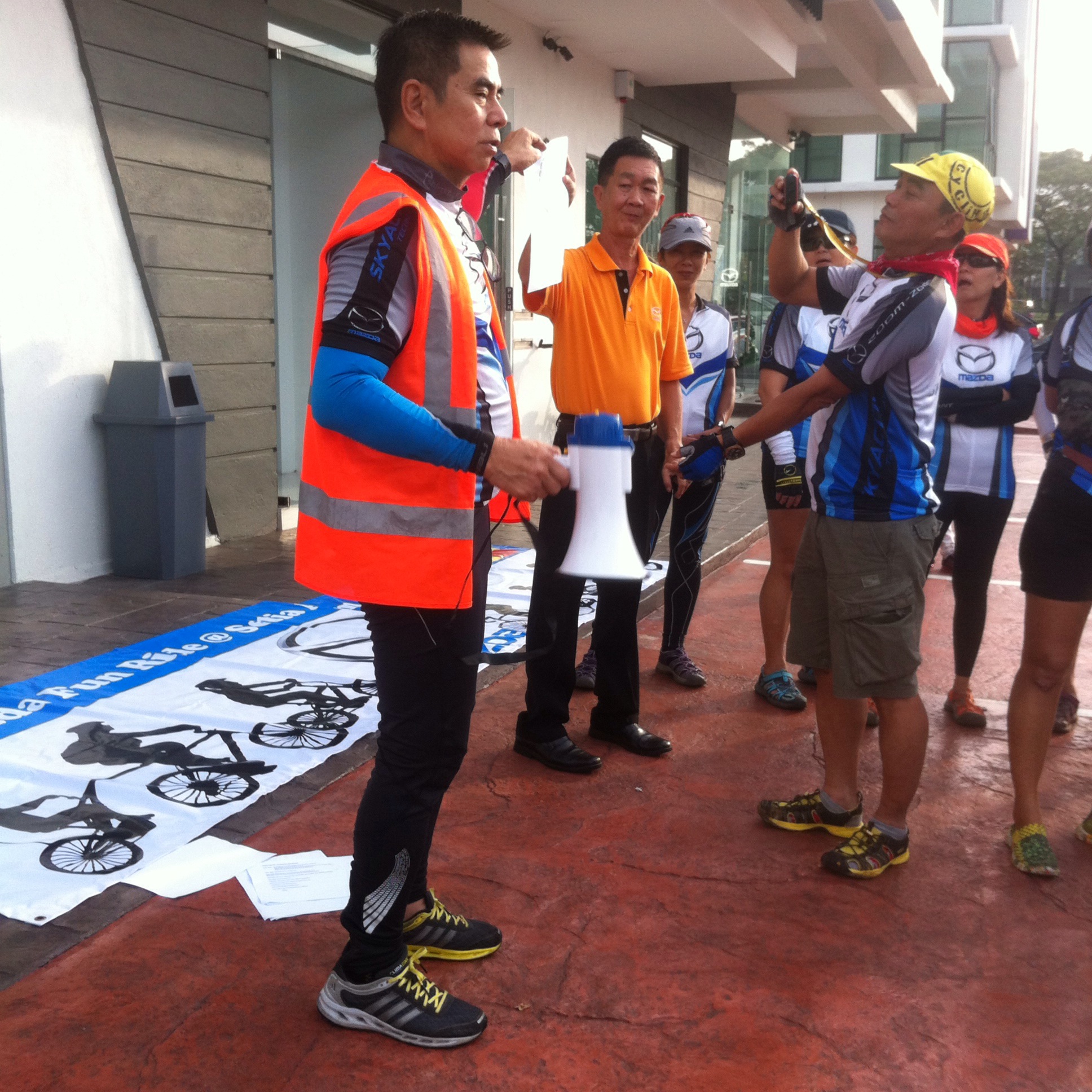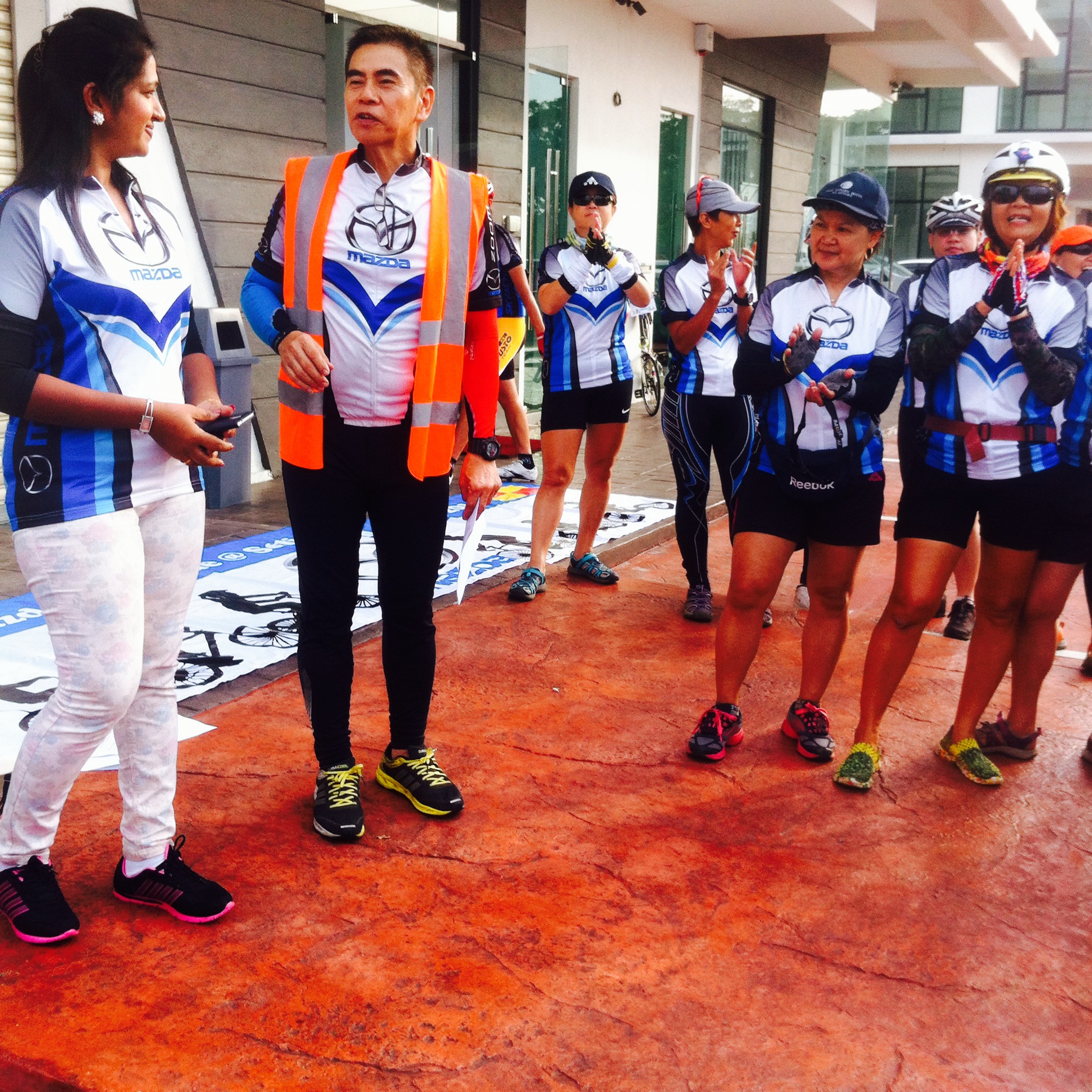 When my wife & I arrived at the scene at 7am, we had to register to receive our exclusive Mazda cycling jersey. A hot breakfast buffet was provided for the 150 participants. At 7:30am, the event co-ordinator, David Senior, addressed the crowd using his loud hailer. He introduced the key members of his organising team, and David Snr. gave us a quick briefing on the Dos & Don’ts of our ride, and on the proper hand signals for cyclists.