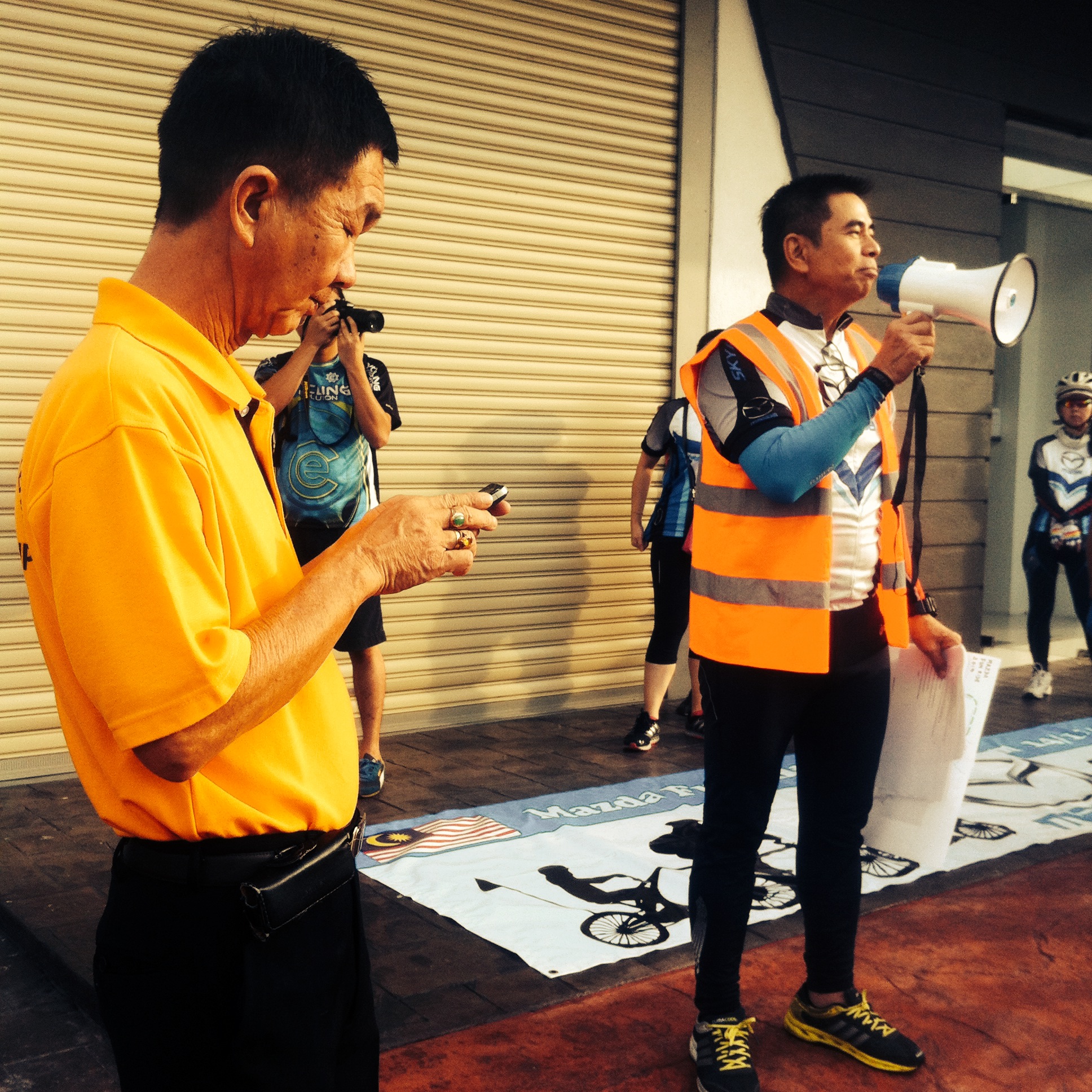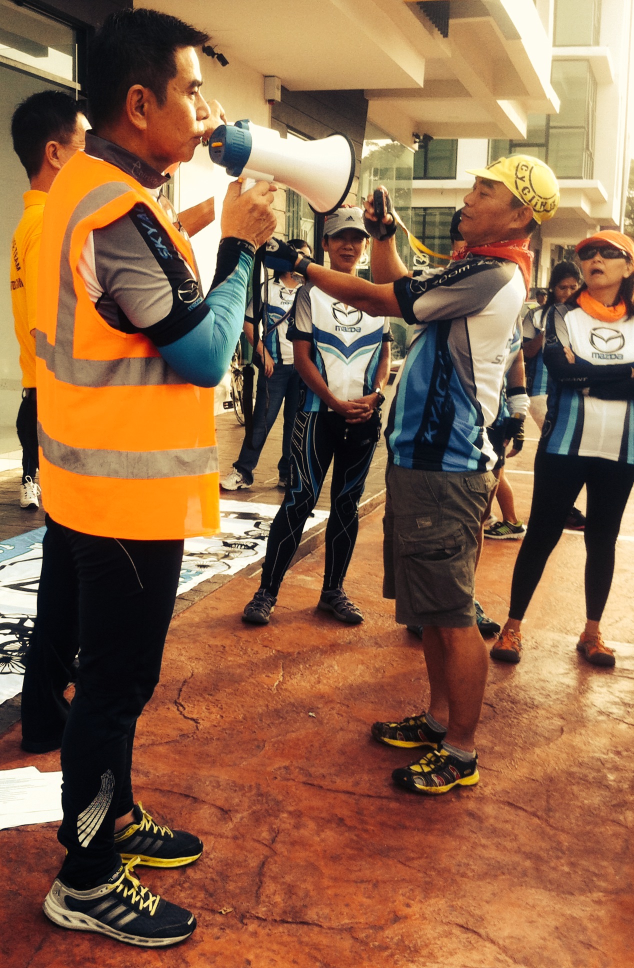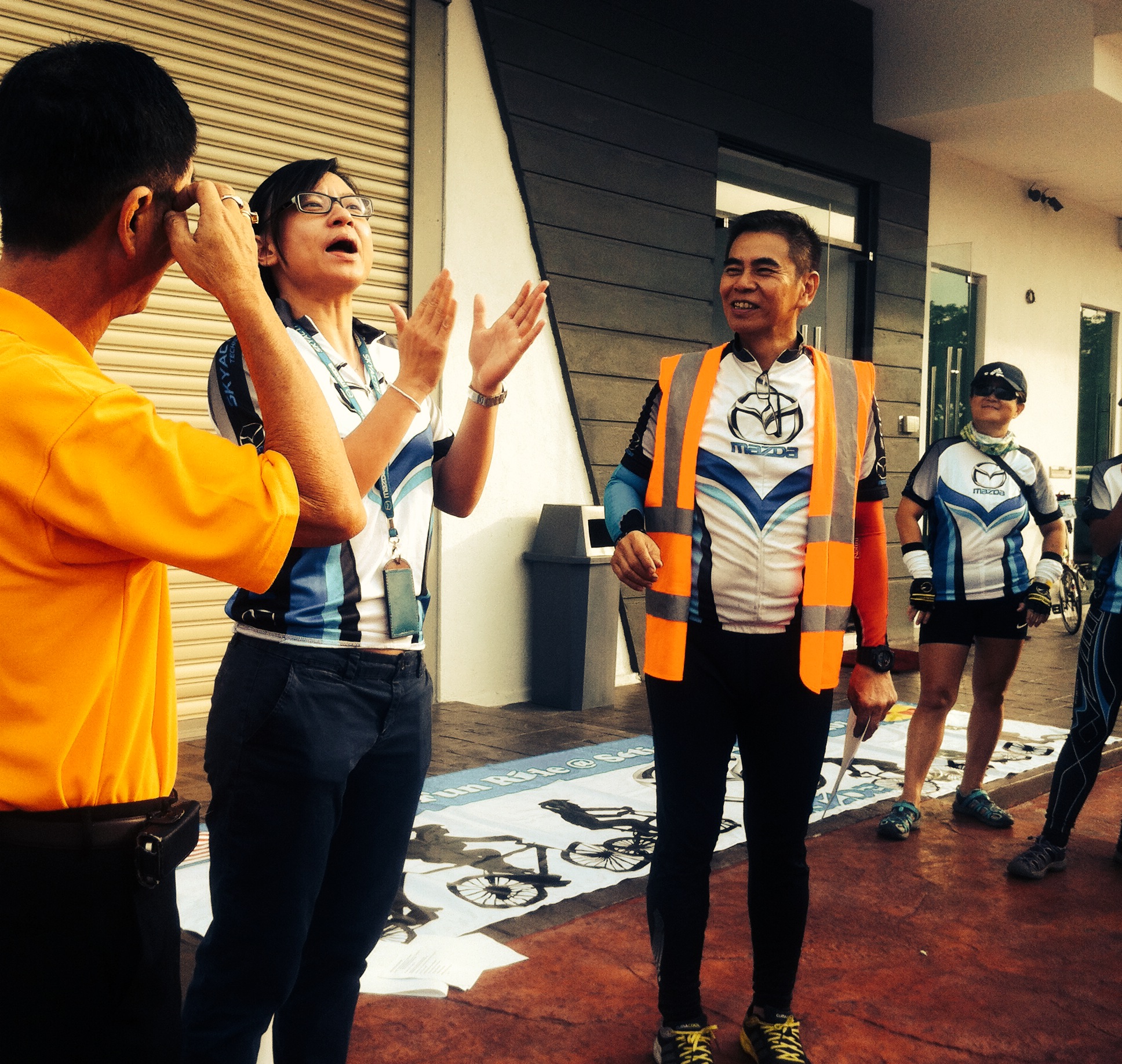 When my wife & I arrived at the scene at 7am, we had to register to receive our exclusive Mazda cycling jersey. A hot breakfast buffet was provided for the 150 participants. At 7:30am, the event co-ordinator, David Senior, addressed the crowd using his loud hailer. He introduced the key members of his organising team, and David Snr. gave us a quick briefing on the Dos & Don’ts of our ride, and on the proper hand signals for cyclists.