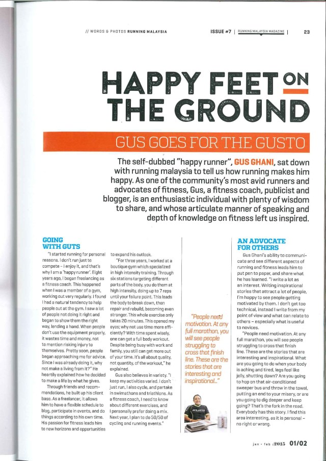 It was a proud experience to be featured in Malaysia’s leading running magazine, Running Malaysia Issue No. 7 (Jan/Feb 2015).