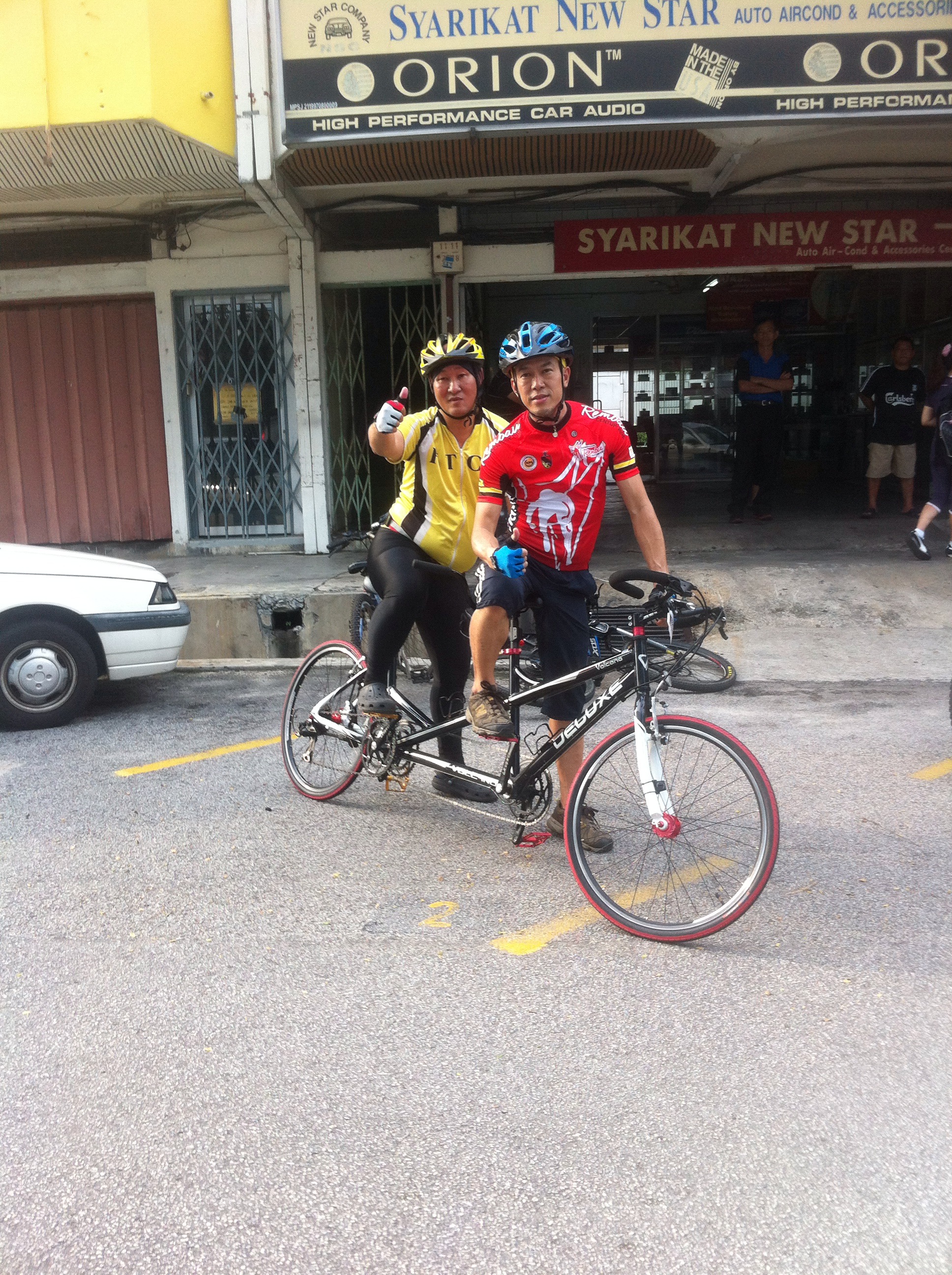 Meanwhile, Maryati & Siow Ling was riding for the first time together. As in my case, the first blind tandem training session for Maryati was awkward as she has to get use to keeping good balance on the tandem and, at the same time, steer the bike with a pillion rider behind. I was happy to see that our female tandem pair was slowly, but surely, working well as a team. With more practice together, I am confident that Maryati & Siow Ling will be an outstanding team. I felt excited & fortunate to be able to witness their first few baby steps today as this was really a history-making moment for our little group.