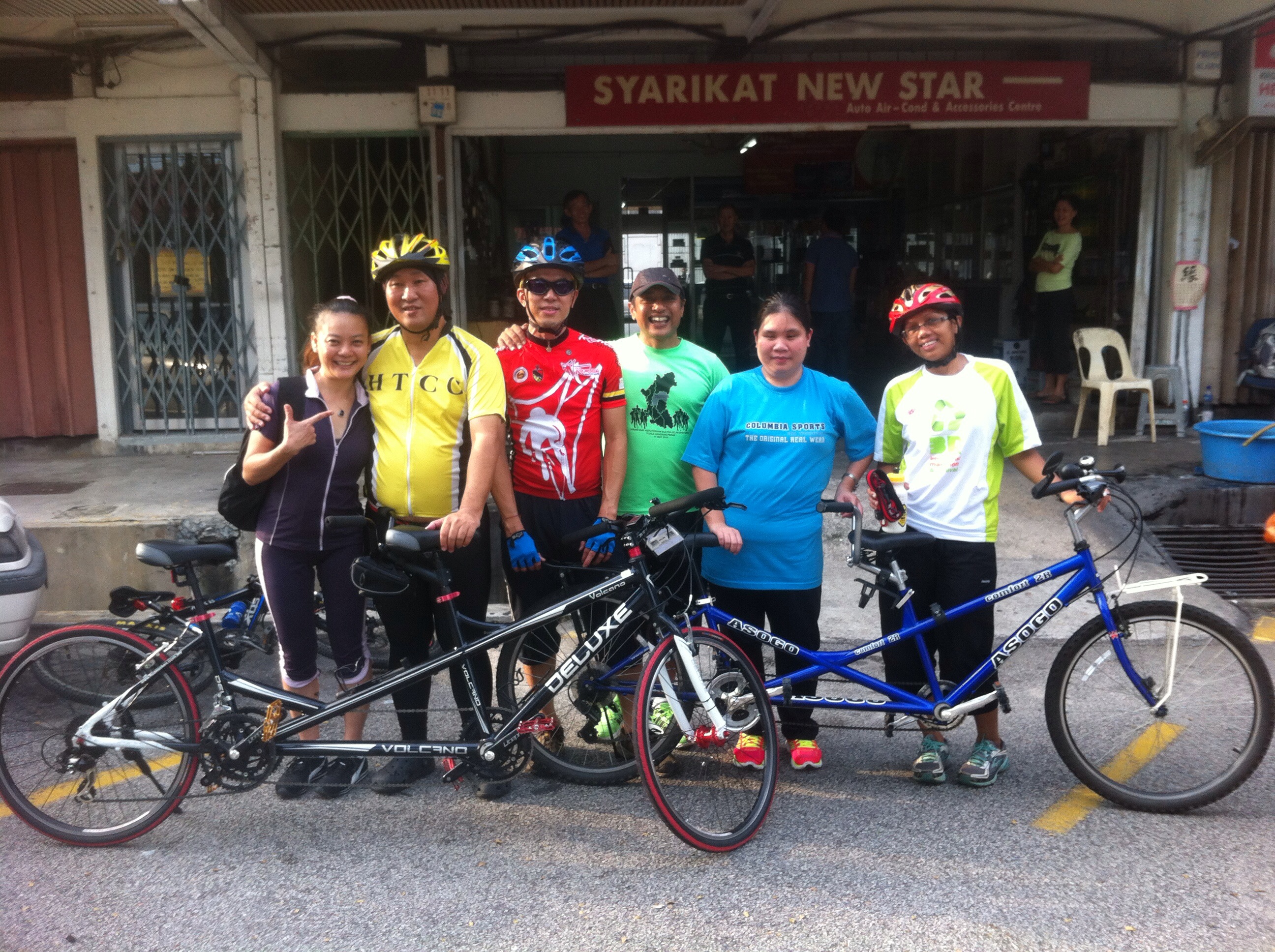 One month ago, 6 friends got together to form a blind tandem cycling team & we called ourselves, “BBT” which stood for BESS (Blind Empowerment Society of Selangor) Blind Team. We have 3 tandem bikes called The Black Horse, The Black Puma and The Iron Lady. The pairings are Jeffrey (Navigator) & Eddy (Blind Pillion); Gus (Navigator) & Steven (Blind Pillion); and the female pairing of Maryati (Navigator) & Siow Ling (Blind Pillion).