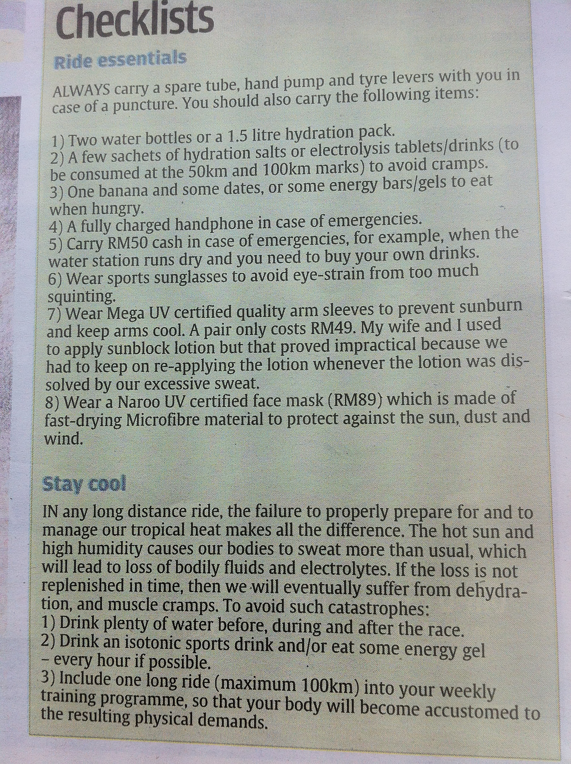 on preparing for century rides entitled “Cycling Over 100km – Good advice for the long-distance bike racer” was published by The Star newspaper (Read It )