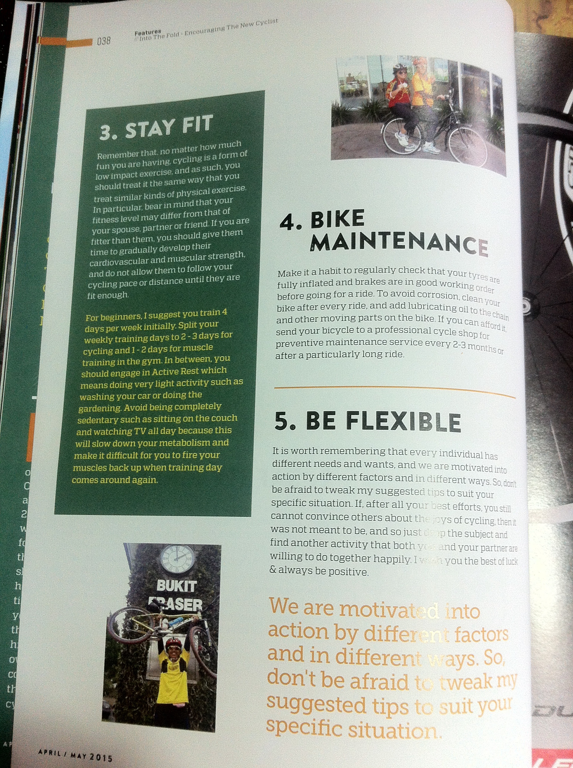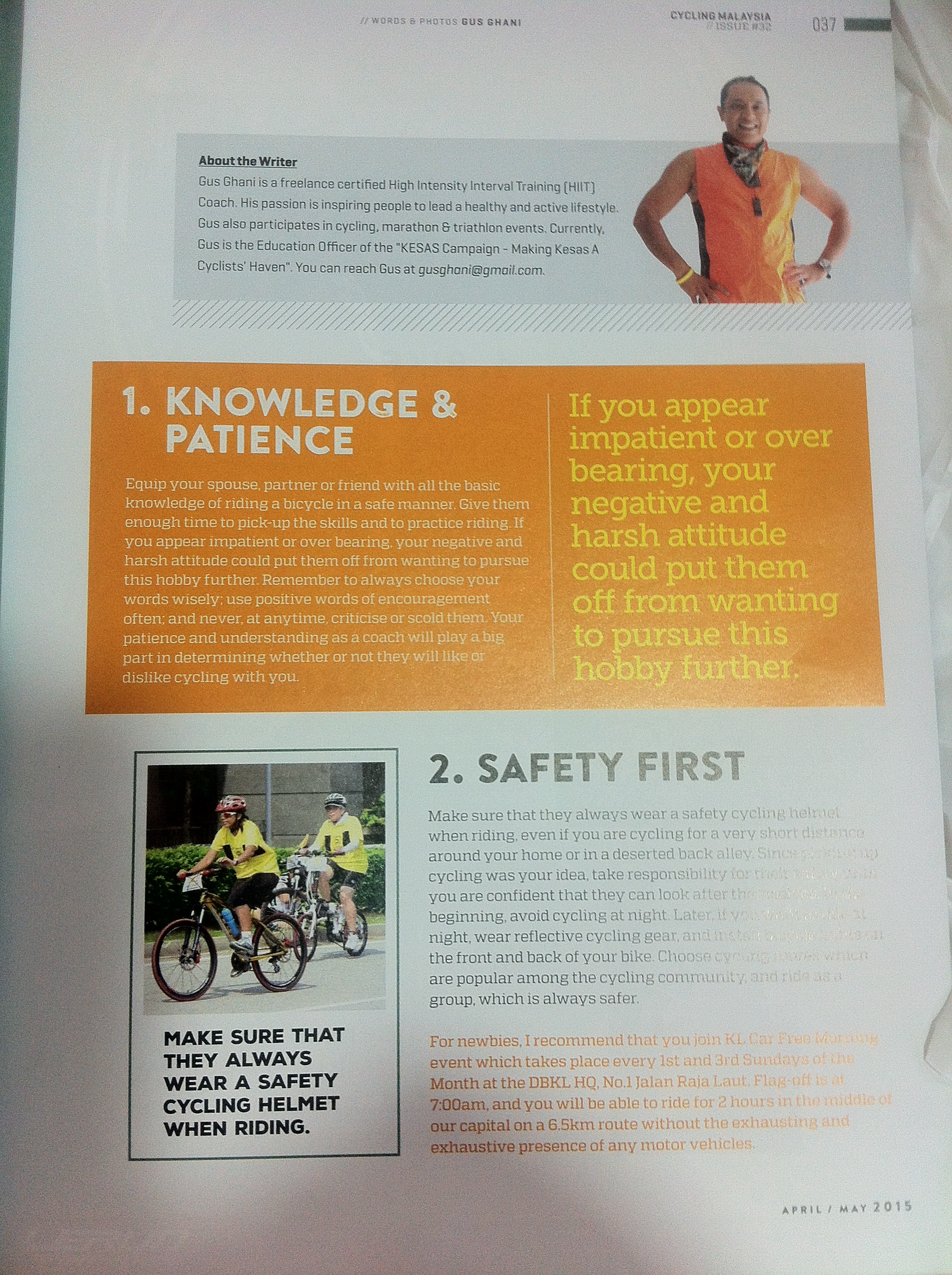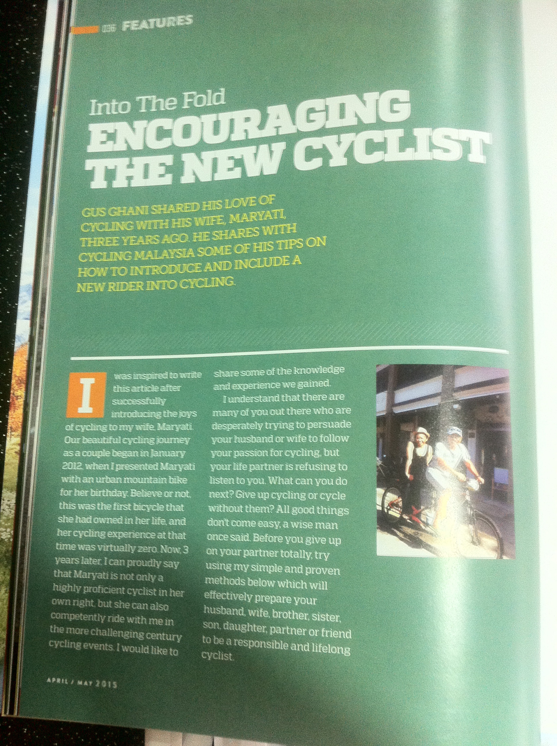In May, my article entitled “Encouraging New Cyclists” appeared in Cycling Malaysia magazine,