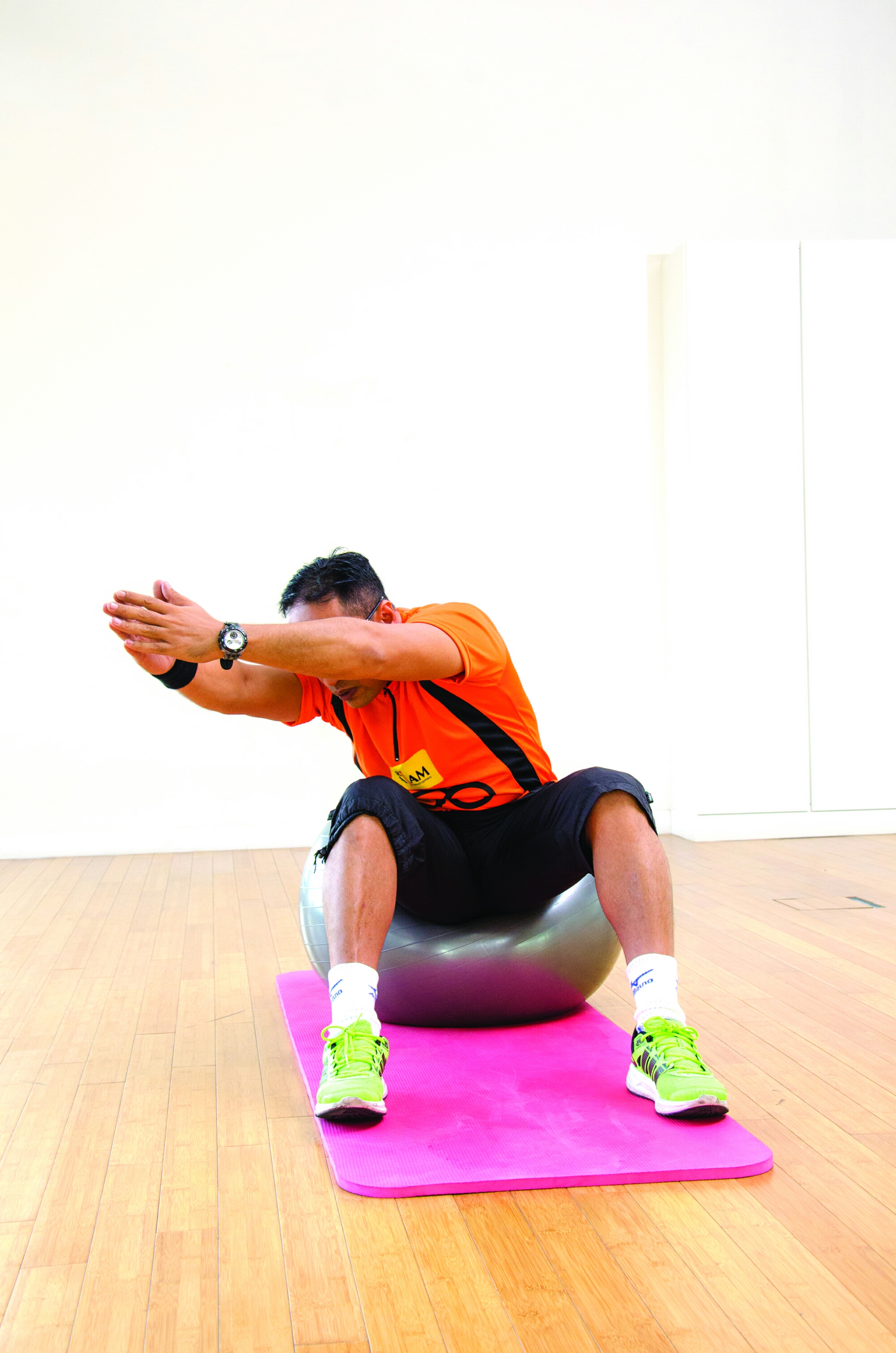 i/ Sit upright in the centre of the ball (see photo 1).