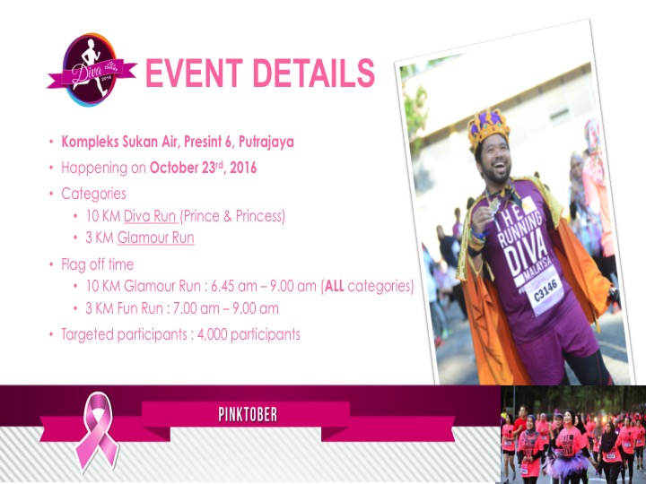 If you do, then I have the PERFECT SOLUTION for you! Join The Diva Running Malaysia 2016 Pinktober because this event actually expects you to behave like an attention-grabbing runner that you are, and at the same time, you will be benefitting someone other than yourself, namely the Breast Cancer Awareness campaign as supported by the Official Beneficiary, NATIONAL CANCER SOCIETY MALAYSIA (NCSM). Now, that’s what I call a WIN-WIN situation!!
