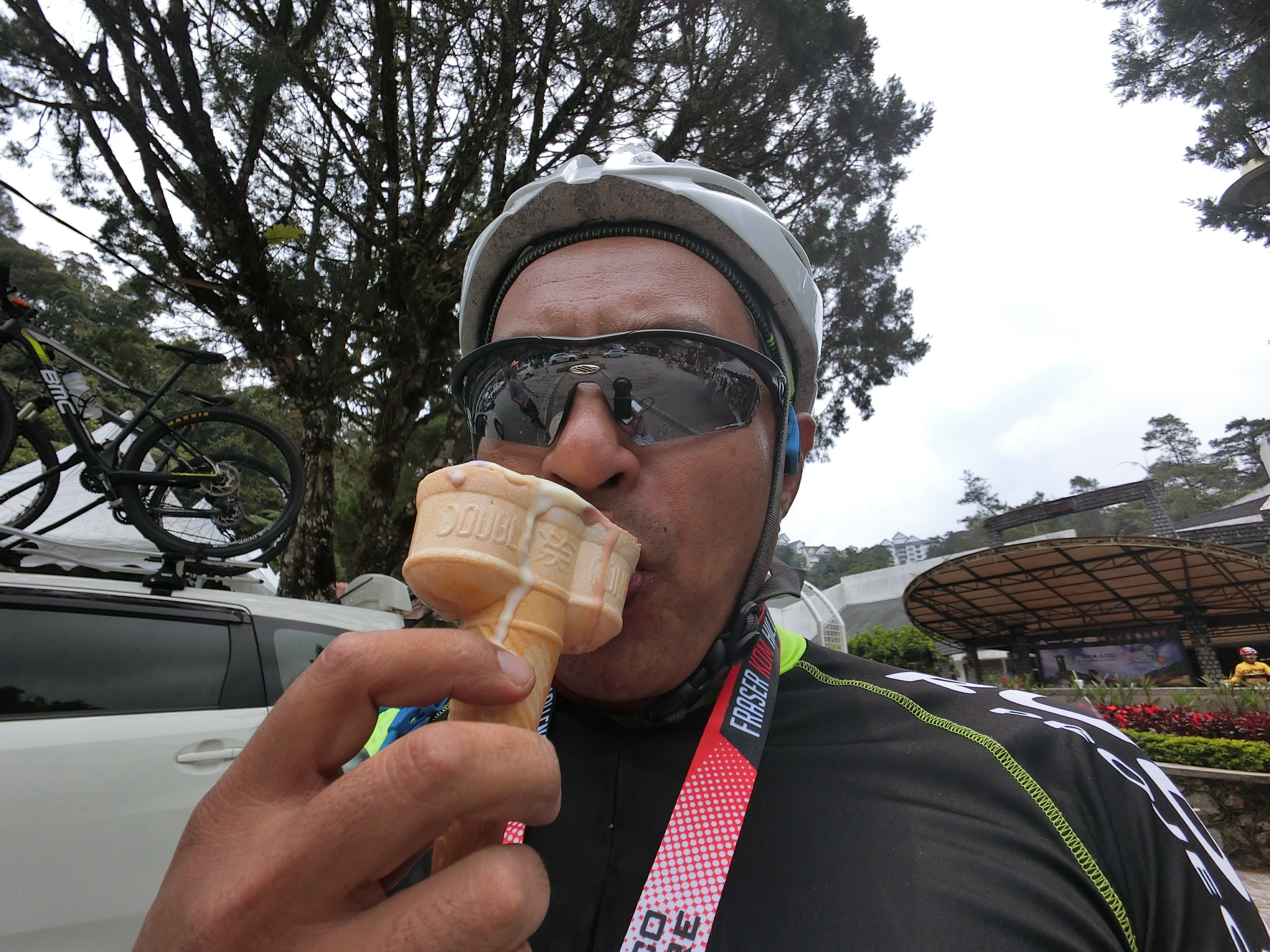 After 5 hours of cycling uphill, I finally made it to the Finish Point where the air was cool and refreshing. I collected my Finisher Medal, ate my hearty lunch of fish and rice, and I swear that ice-cream tastes better up here.