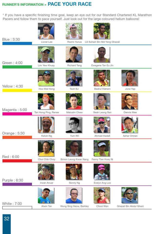 According to Diana Afandi, SCKLM Pacer Team Manager, “Your role is to act as pacemaker for runners to follow in order to achieve a particular finishing time, e.g. if you are a 4:30 hour pacer, you have to forgo your personal best and fully focus on serving and pacing the runners following you in order to finish the marathon within that said finishing time. You must be comfortable in achieving that finishing time on Race Day.