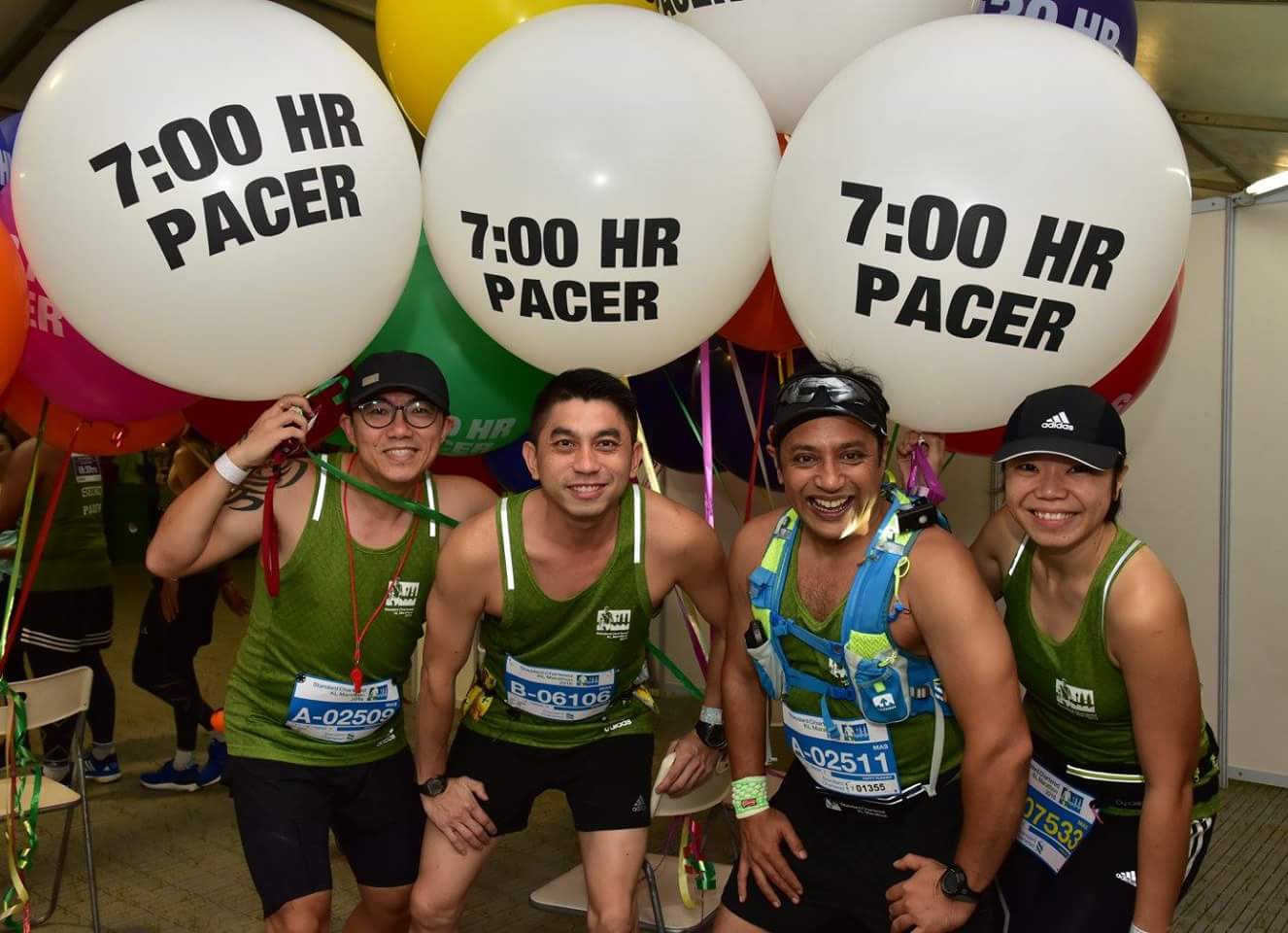 On race morning, the Pacer Team gathered at race venue for a group photo session and to collect our helium balloons.