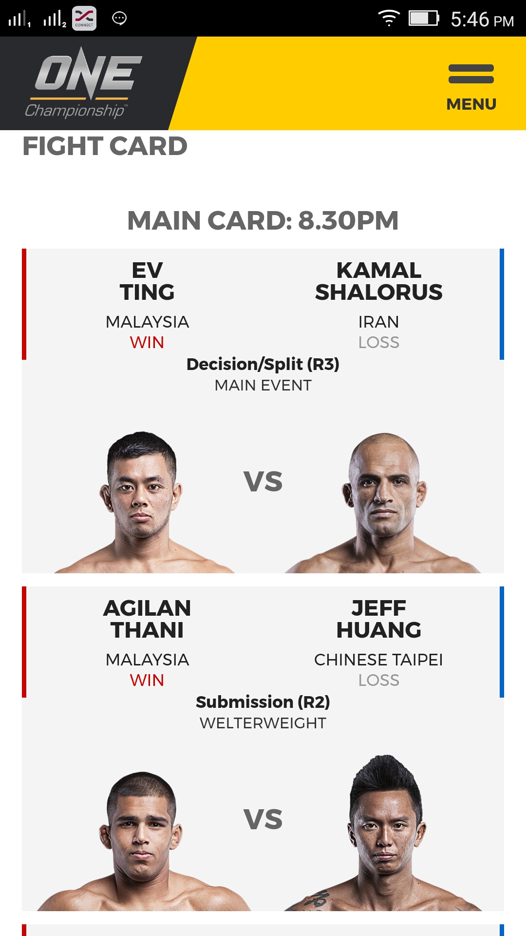 After 15 minutes, two of the three judges scored the bout in Ting’s favor, moving his MMA record to 13-3 with four straight victories. Shalorus, on the other hand, drops to 2-2 inside the ONE Championship cage after his second straight defeat.